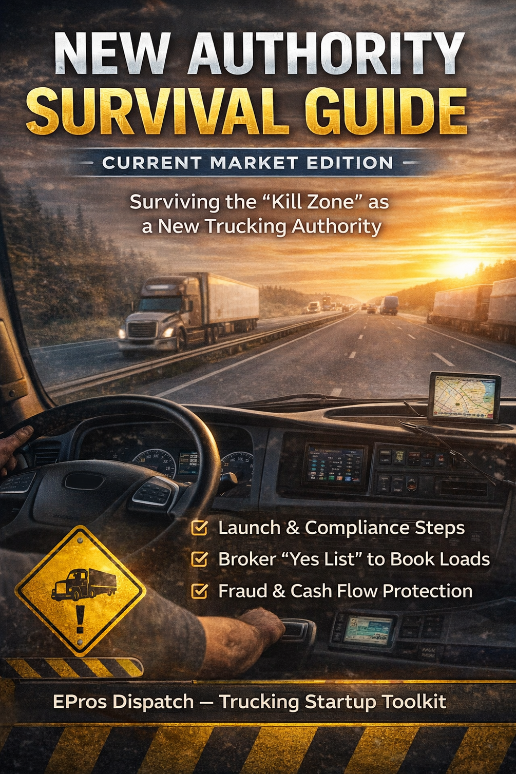 A no-fluff survival guide for brand-new trucking authorities covering compliance, broker approvals, load board mastery, negotiation, fraud prevention, and cash-flow strategy — designed to get you through the most dangerous first 90 days.